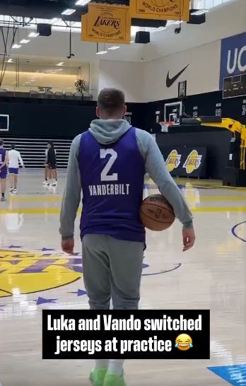 雷速体育10月14日讯 湖人官方社交媒体今天晒出视频,东契奇和范德比尔特在今天的训练中交换球衣穿。